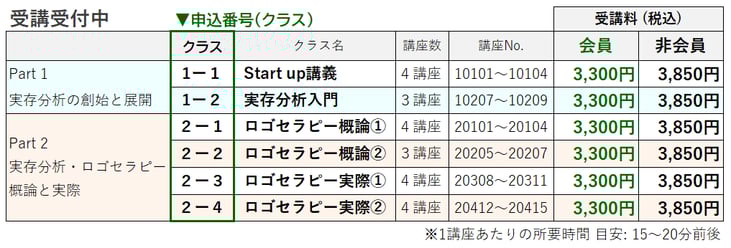 | Part1 | 実存分析の創始と展開 | 全7講座 |