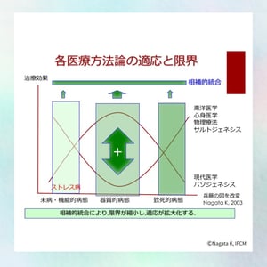 すなわち、古くからある伝統的東洋医学(漢方方剤、鍼灸、食養など)の智慧や、心身医学の智慧も入れ、心身両面から患者さんを理解すること、さらに、実存分析(ロゴセラピー)を導入し、患者さん固有の生きる意味を理解することが重要です。