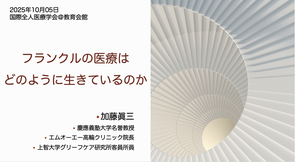 国際全人医療学会 · 2025/10/14 「フランクルの医療はどのように生きているのか?」加藤眞三氏【国際全人医療医療学会2025報告】 第12回国際全人医療学会のシンポジストとして、加藤 眞三 氏(慶應義塾大学名誉教授,エムオーエー高輪クリニック院長)にご登壇いただきました。 加藤先生には「フランクルの医療はどのように生きているのか?」というタイトルで、スピリチュアルケアの視点からフランクルが目指した医療の本質についてご講義いただきました。 tagPlaceholderカテゴリ: